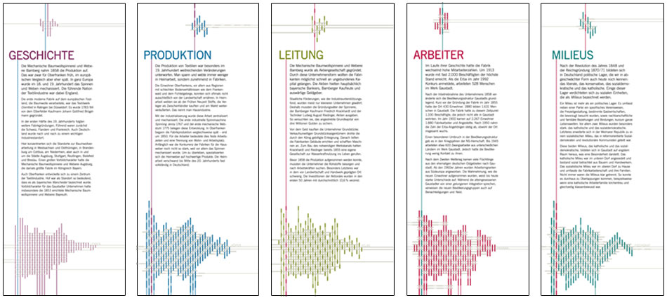 Ausstellung in der ehemaligen Baumwollspinnerei ERBA in Bamberg im Rahmen der Landesgartenschau Bamberg 2012 in Kooperation mit der Universität Bamberg. Geschichte, Produktionstechniken, Stoff-Designs und Gefahren bei der Arbeit werden hier ebenso gezeigt wie der Einfluss der Arbeiter auf das Leben in Gaustadt.